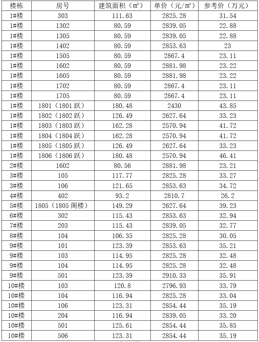 2.住宅房33套,面积及价格见下表: