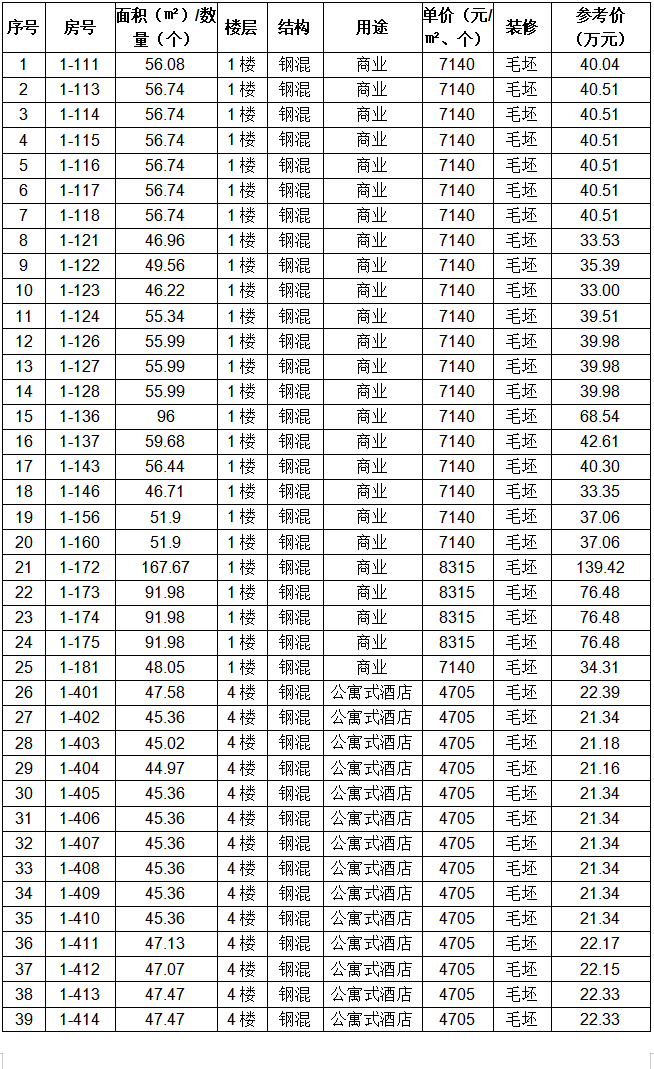 一、拍卖标的:位于六安市金寨县梅山镇新城区红石谷路以南、江天路以北,金寨智慧万汇广场1、2、3、4号楼270套房屋及124个地下车位,整体打包拍卖。参考价:8945.34万元。保证金:900万元。标的详情详见以下标的物清单: